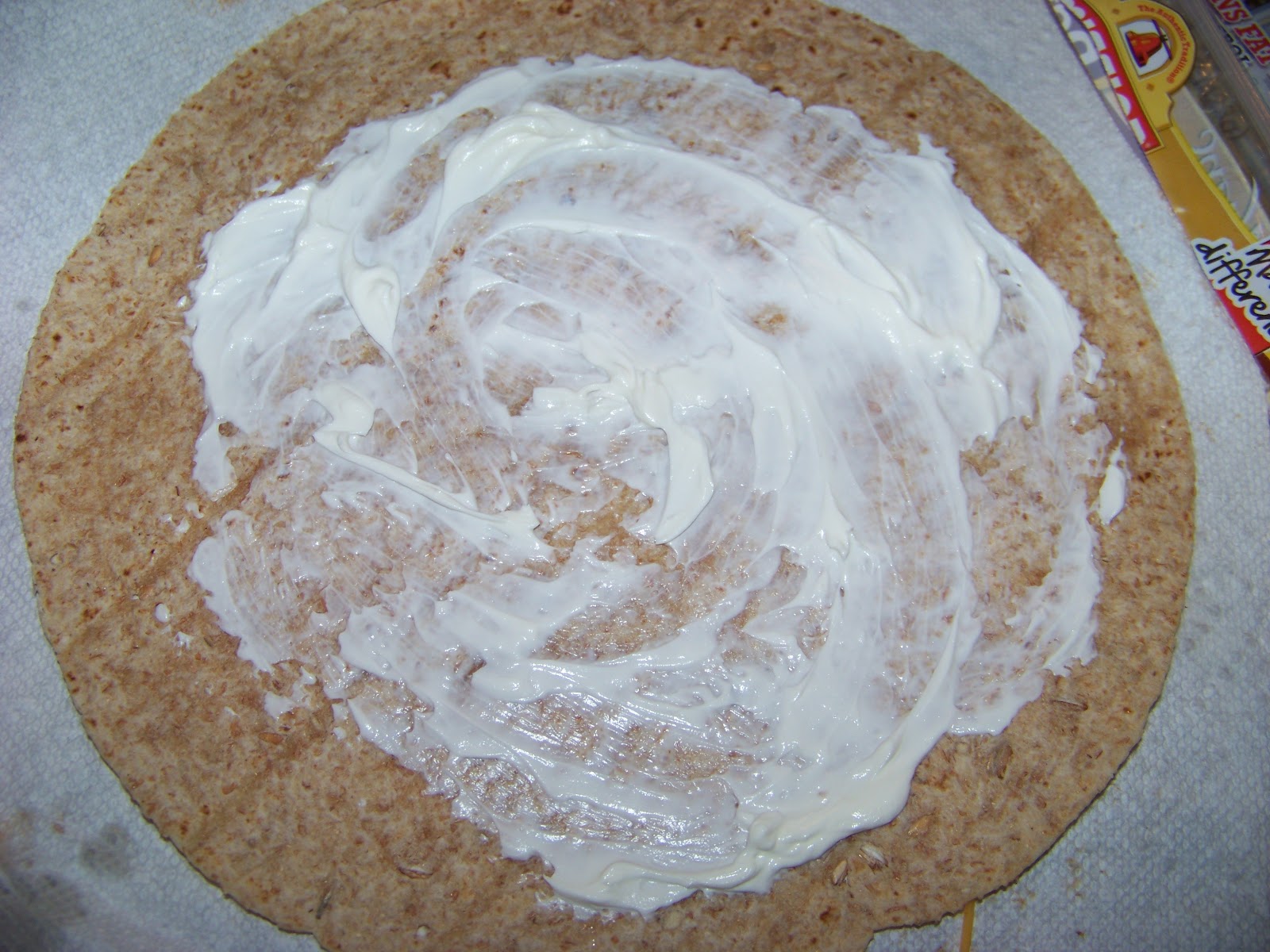 Again, I substituted whole wheat tortillas for the white and it was just as delicious. You can also omit the sour cream and use mozerella cheese instead of cheddar to shave a few calories off. I kept the sour cream and made it fat free because it helps keep the burrito stuck together when it's in the skillet.